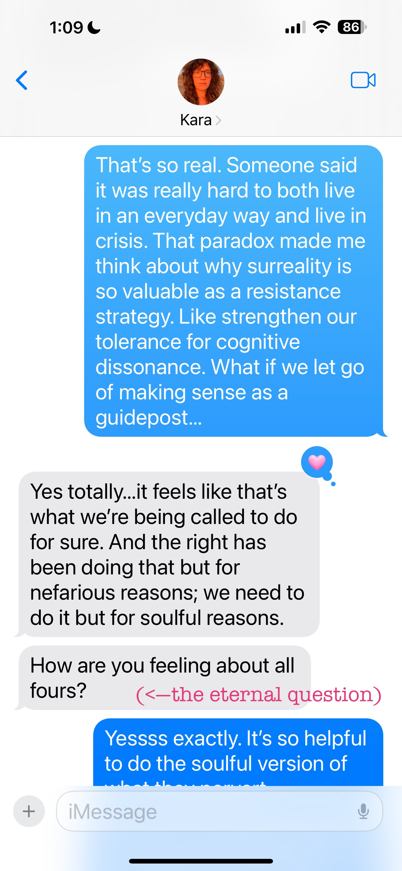 I’m slowly listening to TELEPATHY TAPES and it’s blowing my mind. But not the content, more that it’s so rare to find something that takes telepathy and different ways of knowing so seriously. Mostly I just feel, like, immensely relieved? To have a lifetime of off-the-page experiences validated. Also Ani plugged it at her show in January, so.