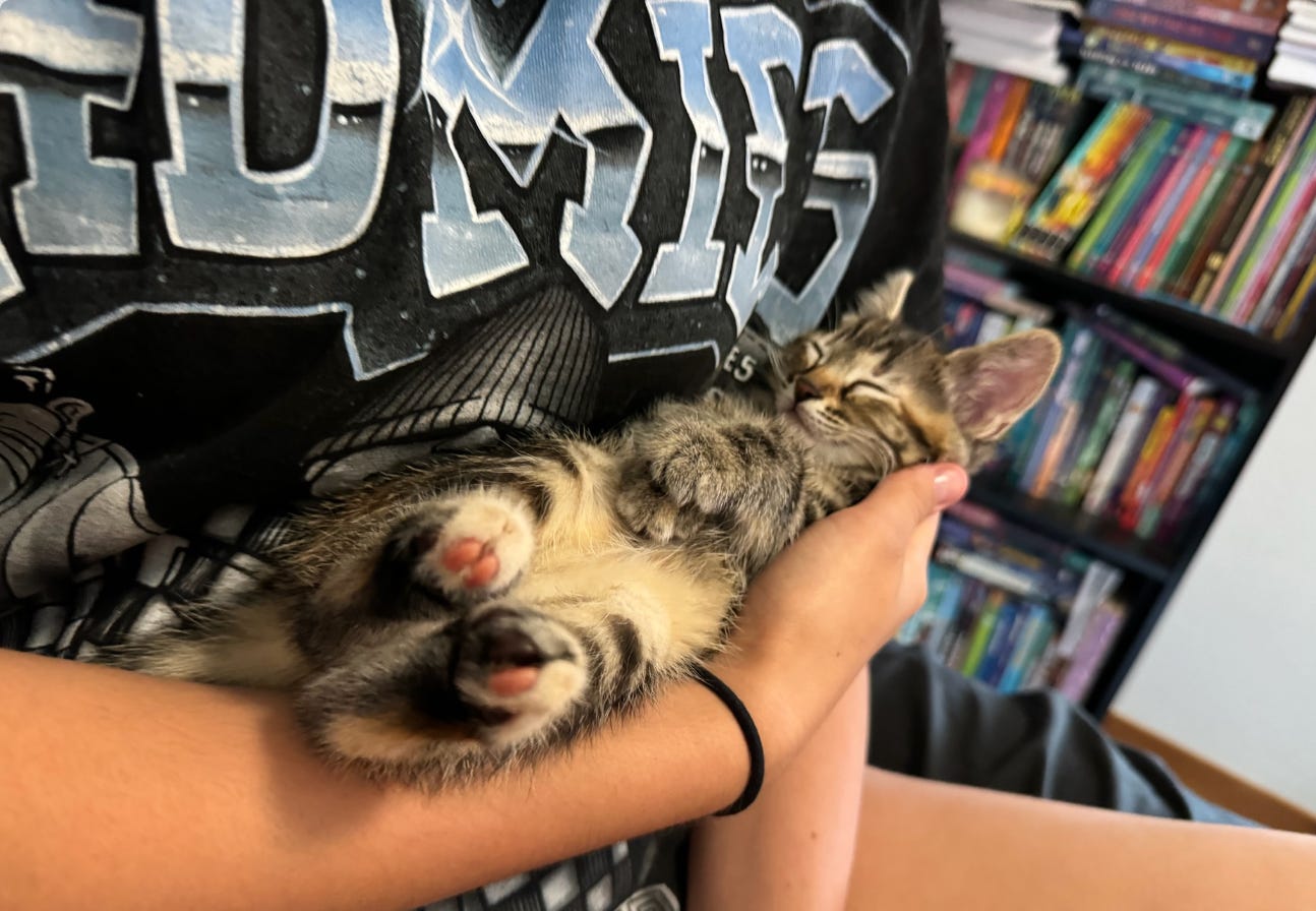 (Just as I wrote that my kitten very loudly tried to kill a baby bird in the nest outside my office window, so, case in point. (Junie, you are always-winter-never-christmas in this metaphor.2)